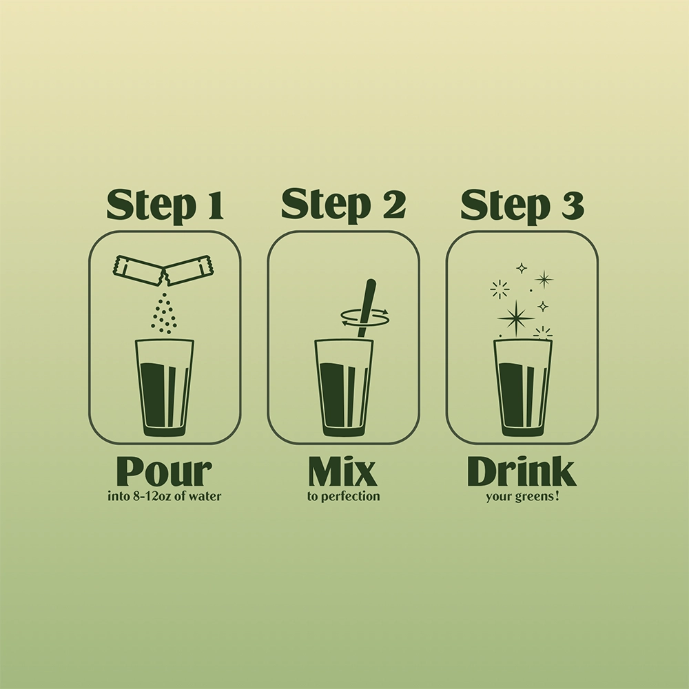 Supercharge your day anywhere, anytime, with our premium greens blend. Available in easy, on-the-go servings, it's simple to fuel your adventures and feel like you're on top of the world.